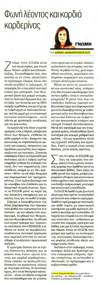 Απέναντι στον λαϊκισμό, στους σωτήρες Δεξιά και Αριστερά και στα ευκαιριακά σχήματα, πρέπει επειγόντως να αντιταχθεί η ιδεολογία, το πρόγραμμα και κυβερνητική ομάδα.